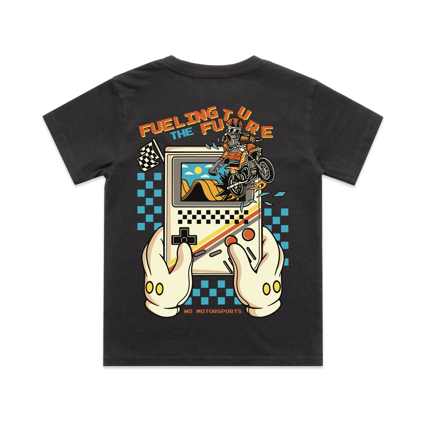 The WO Motorsports Video Game Tee brings retro Gameboy-style energy to motocross, because Fueling the Future starts with the next gate drop.